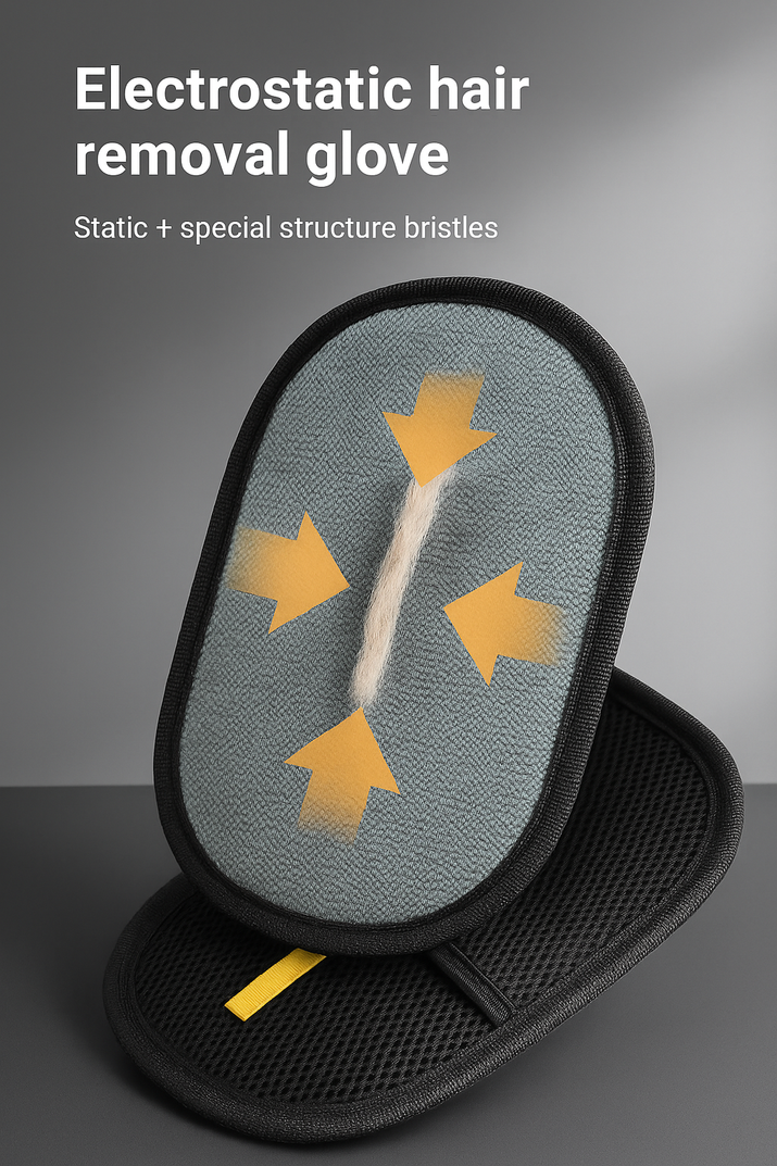 Answer 1: The grooming gloves feature soft, flexible bristles that effectively capture pet hair while you pet your animal. Simply put them on and stroke your pet to collect loose hair, making cleanup easy and mess-free.